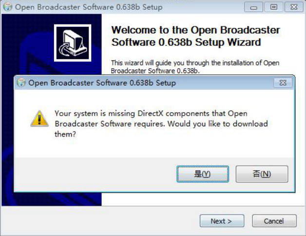 2. Windows系統(tǒng)安裝OBS軟件如出現(xiàn)以下情況,請(qǐng)先安裝補(bǔ)丁插件,插件下載地址:https://pan.baidu.com/s/1IUv-dVlPJXPPknzJSPXmvg