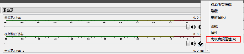 點(diǎn)擊混音器里的麥克風(fēng)齒輪,選擇“高級(jí)音頻屬性”,將要監(jiān)聽的麥克風(fēng)選為“監(jiān)聽并輸出”