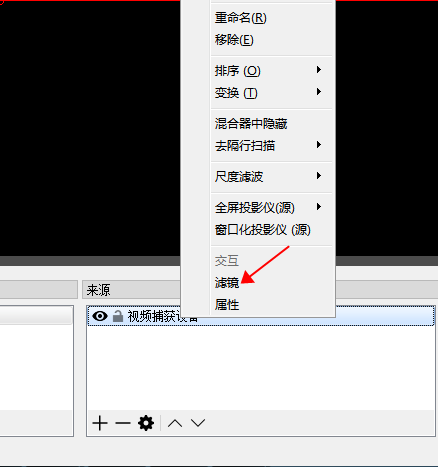 6. 為了使音視頻同步,設(shè)置視頻延時(shí)(音視頻同步正常,可跳過此環(huán)節(jié))右擊“視頻捕獲設(shè)備”,選擇“濾鏡”