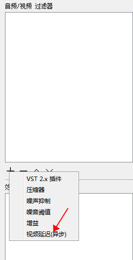 在彈出的視窗中,點(diǎn)擊“+”后選擇“視頻延遲(異步)”