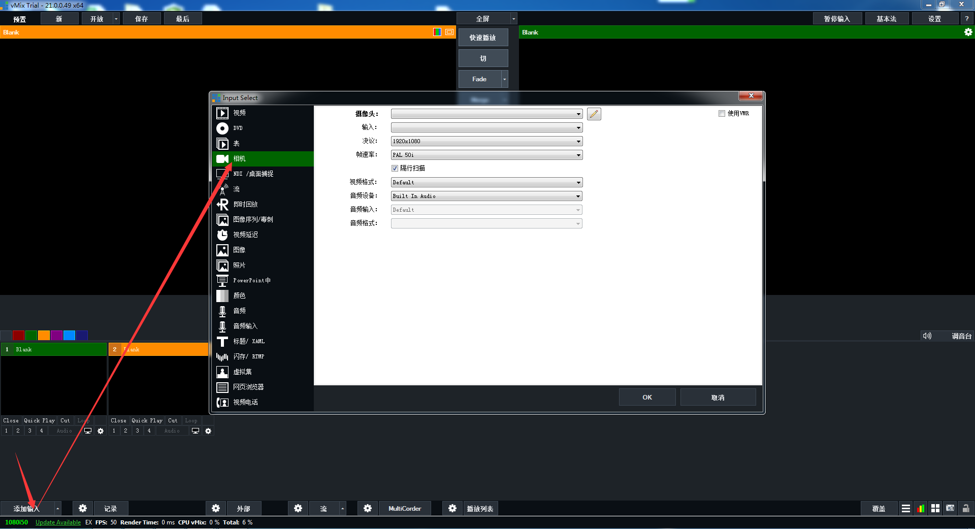 2. 啟動vMix,點擊“添加輸入”,再點擊相機(jī);