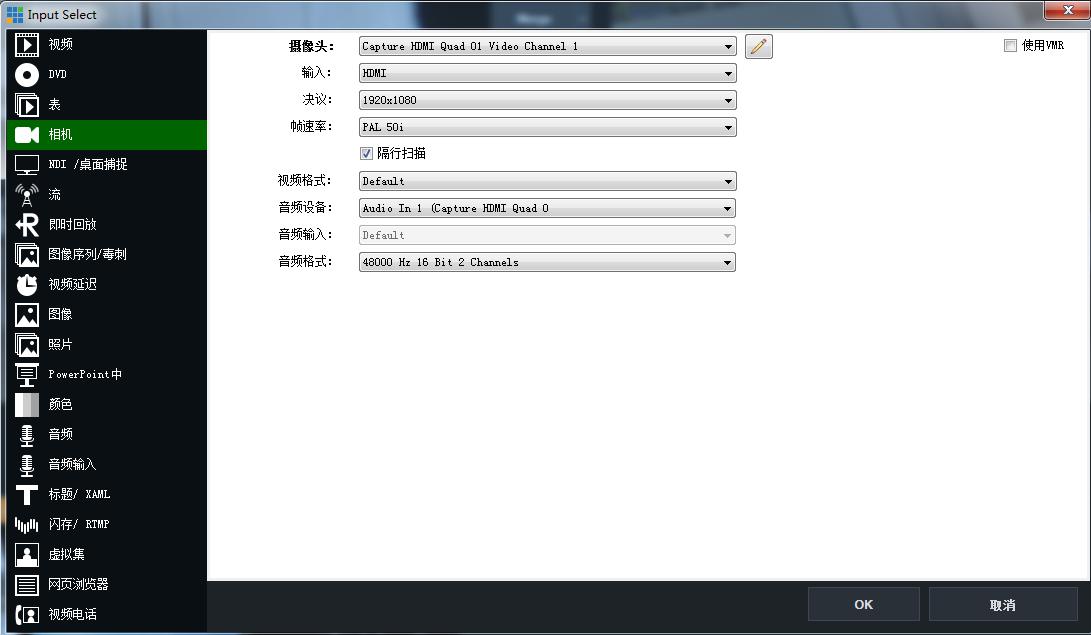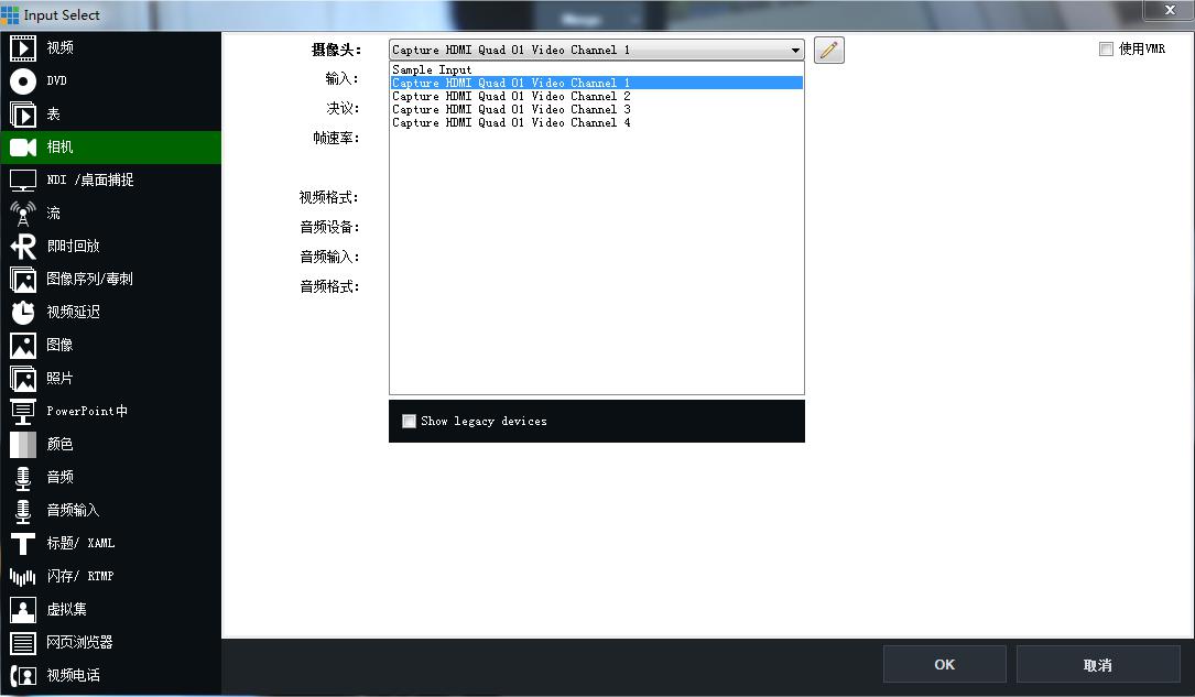 3. 此文檔采用思非四路HDMI采集卡(Capture HDMI Quad)作演示,攝像頭選思非采集卡接入信號的那一路;