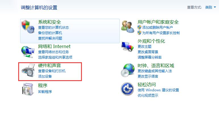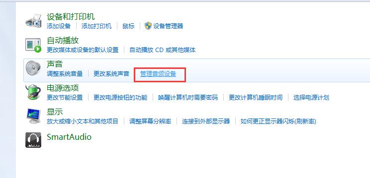 4. 采集聲音按下圖設置,先打開控制面板,點擊硬件和聲音,然后點擊管理音頻設備;
