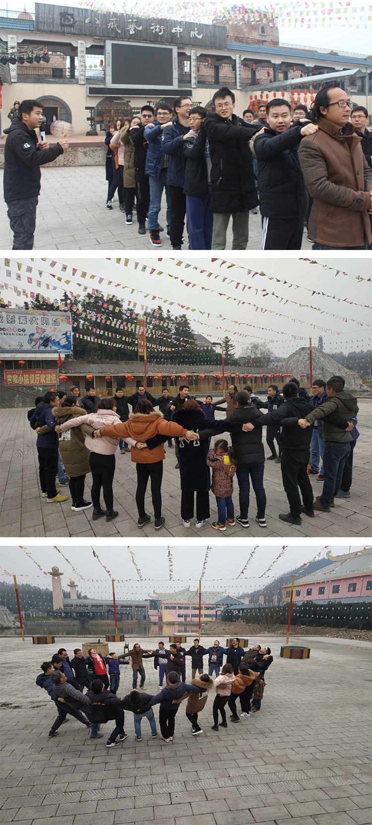 午餐后,大家在景區的八戒藝術中心門口開始我們的趣味運動會活動。教練帶領大家進行了破冰熱身運動,將所有人員分成兩隊,紅隊和藍隊。大家也很應景的給各自的隊伍取了隊名,“佩奇隊”和“八戒隊”。此次趣味運動會有“星球大戰”、“拔河”、“神筆馬良”、“運轉乾坤”、“真人五子棋”五個比賽項目,比賽中,全體運動員團結協作、頑強拼搏,充分展現了大家積極向上的精神風貌。賽場上,掌聲、笑聲、助威聲此起彼伏。最后,“佩奇隊”獲得了此次趣味運動會的勝利,教練為他們頒發了獎品,下午的趣味活動在一片歡樂和活力中圓滿結束了。