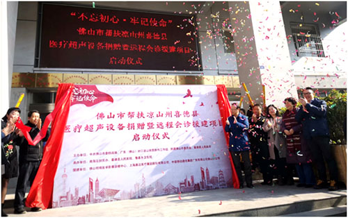 2019年12月,我公司參與了佛山明峰醫學影像診斷中心、上海康達醫療器戒集團有限公司、中國移動佛山分公司關于《不忘初心,牢記使命。佛山市幫扶涼山州喜德縣醫療超聲設備捐贈暨遠程會診援建項目》。援建項目啟動儀式于2019年12月10日在喜德縣人民醫院舉行,為喜德縣人民醫院、魯基鄉衛生院捐贈便攜式彩超及遠程會診系統兩臺套并提供遠程醫療專家會診服務,其中遠程會診系統由我公司提供。