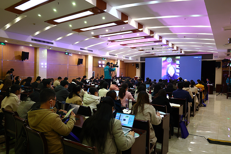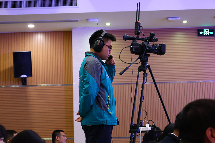 思非電子全程提供技術支持,運用四通道導播一體機采集三機位畫面,并直接推流到第三方直播平臺保證了線上線下會議的正常進行。線上嘉賓采用騰訊會議與現場參會人員進行視音頻互動,網絡直播畫面顯示現場多機位畫面、PPT、視頻,聽到與現場完全相同的聲音。實現畫面聲音實時穩定的直播到直播平臺。