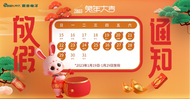 我公司春節(jié)放假時間為:2023年1月19日-2023年1月29日,共11天,1月30日(周一)正常上班。祝各位同事及廣大客戶新年快樂,萬事如意!