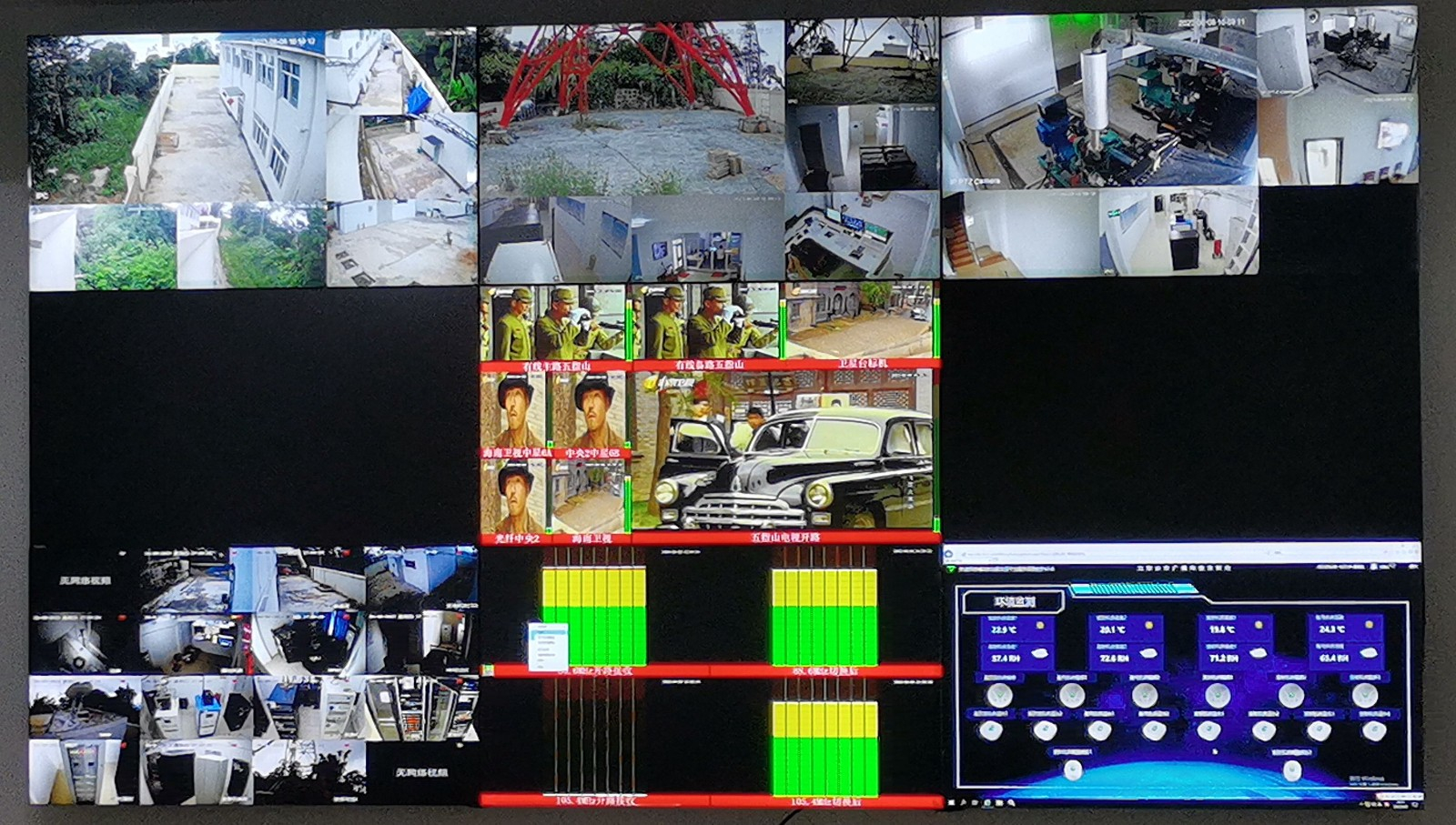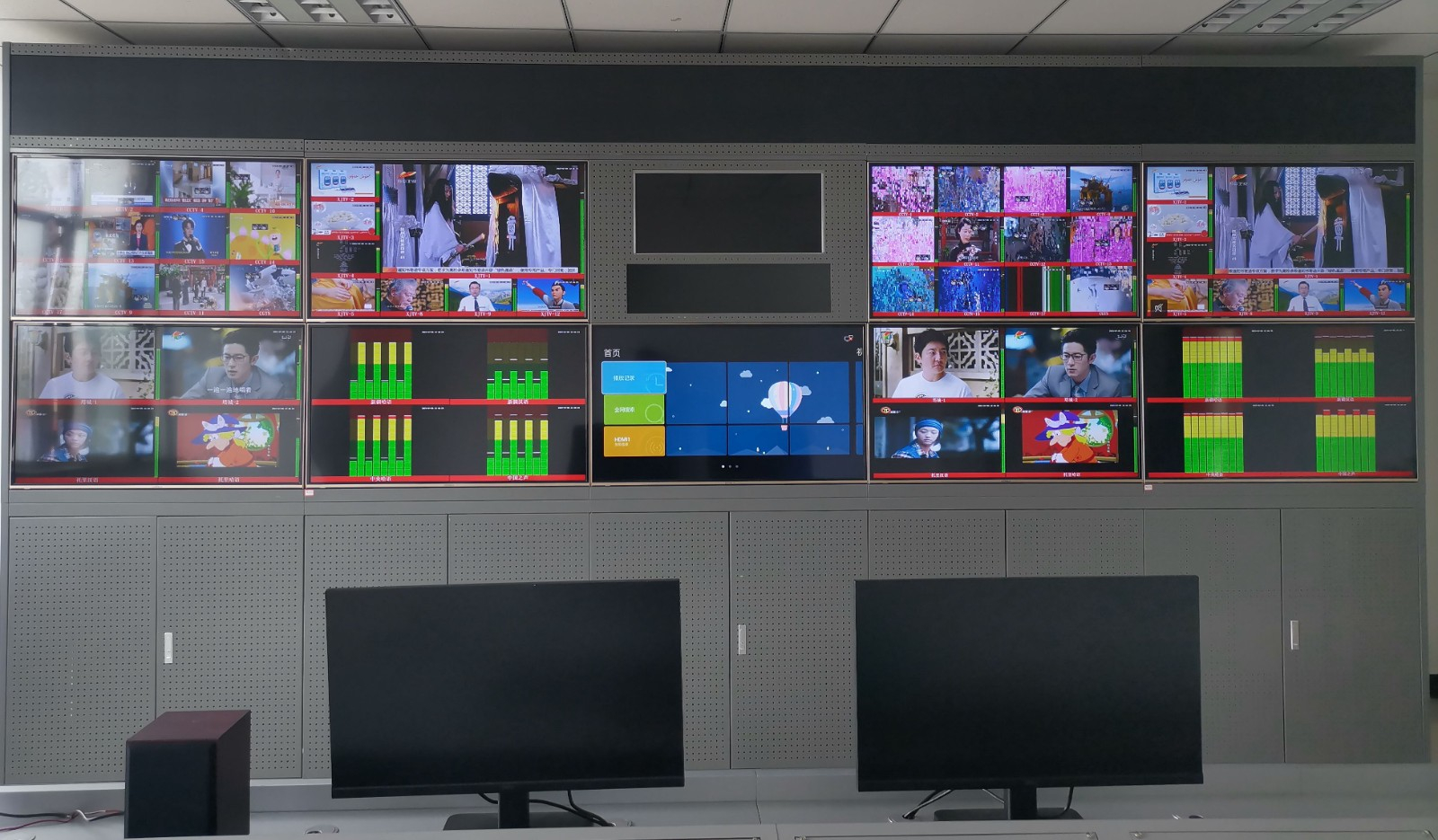? 每臺監測主機通過VGA或者DVI、HDMI接口把多套節目畫面和音量指示送到大屏上組合顯示。可自定義畫面組合方式,并可以內嵌模擬數字時鐘或者圖片顯示獨